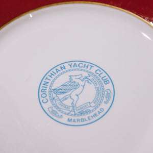 A striking piece of classic yacht club history. This vintage Corinthian Yacht Club plate features a bold red ring encircling the iconic CYC burgee seal at its center. Manufactured in New Castle, Pennsylvania, it reflects the timeless tradition of American club china.